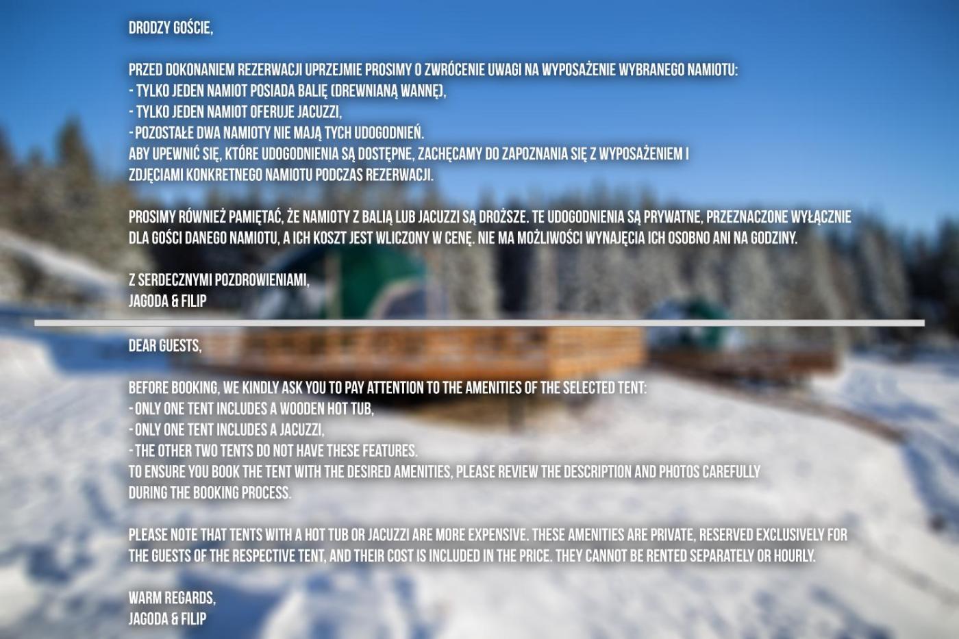 Namiot. This tents standout features are the hot tub and fireplace. Guests will find a stovetop, a refrigerator, a dishwasher and kitchenware in the kitchenette. The tent also comes with a barbecue. The tent features air conditioning, a private entrance, a terrace with garden views as well as a private bathroom boasting a walk-in shower. Namiot - 5 osobowy. Powierzchnia pokoju ok.: 38 mkw. ;