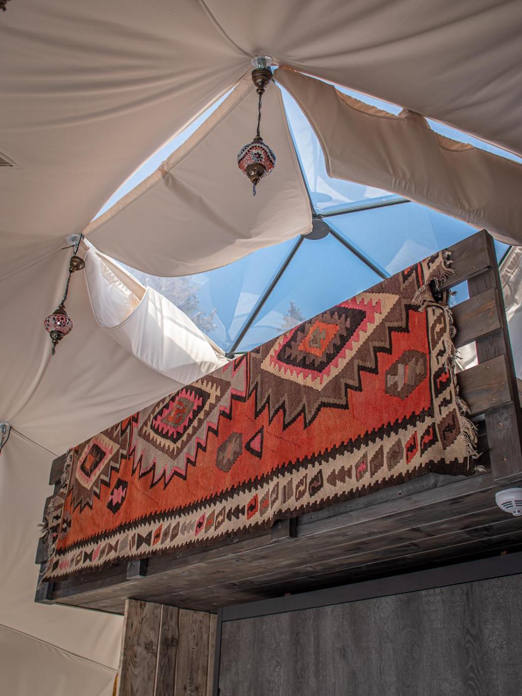Namiot. This tents special features are the hot tub and the fireplace. Guests will find a stovetop, a refrigerator, a dishwasher and kitchenware in the kitchenette. The tent also includes a barbecue. The tent features air conditioning, a private entrance, a terrace with garden views as well as a private bathroom boasting a walk-in shower. Namiot - 5 osobowy. Powierzchnia pokoju ok.: 38 mkw. ;