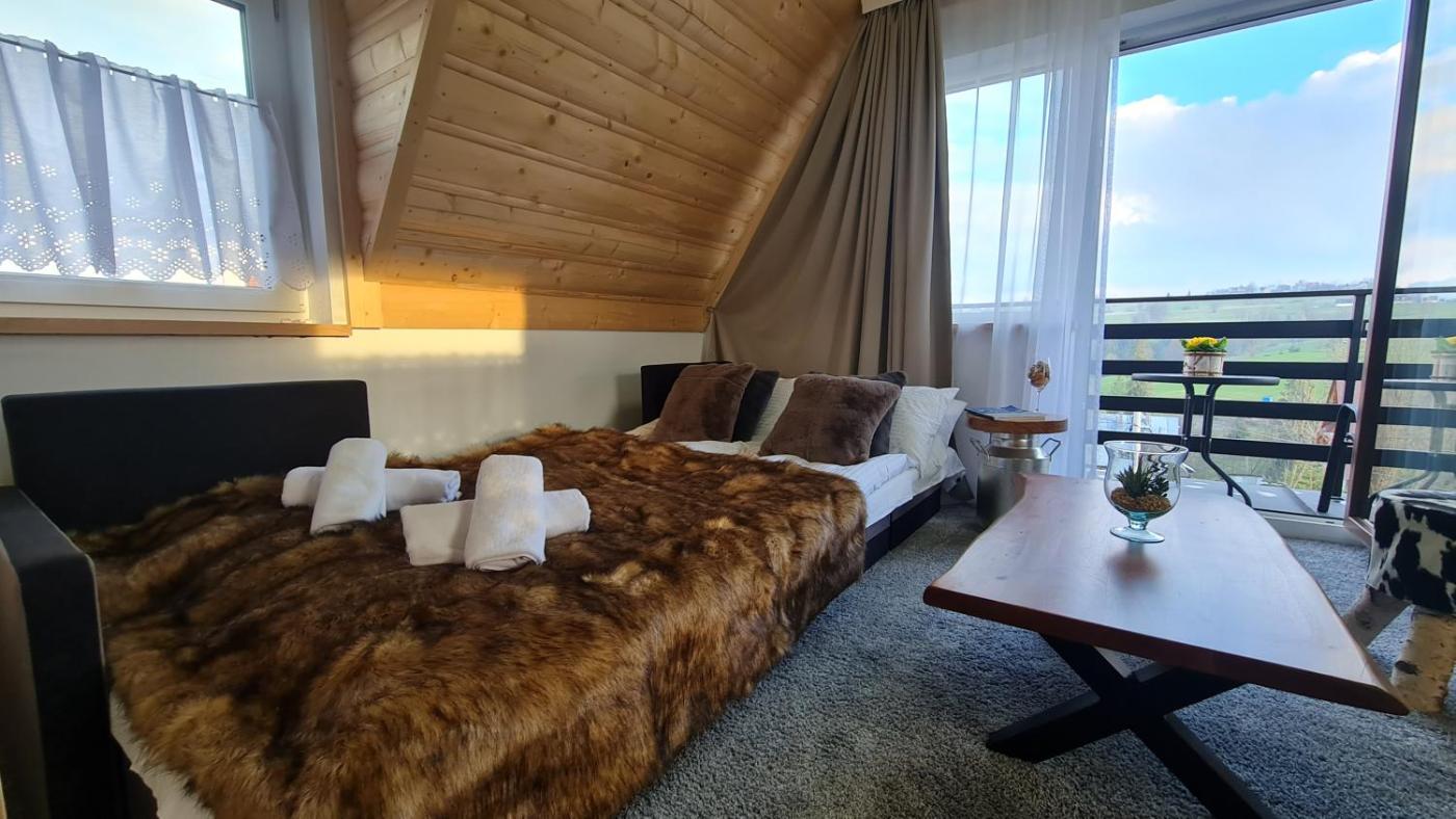 Pokój Dwuosobowy typu Deluxe z balkonem. The spacious double room offers soundproof walls, a tea and coffee maker, as well as a private bathroom boasting a shower and a hairdryer. Meals can be prepared in the well-fitted kitchen, which has a stovetop, a refrigerator, kitchenware and a microwave. The double room features a flat-screen TV, a wardrobe, a dressing room, a sofa as well as garden views. The unit has 2 beds. Pokój Dwuosobowy - 4 osobowy. Powierzchnia pokoju ok.: 40 mkw. ;